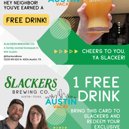 Take a break, connect with locals, and savor the flavors of Austin—cheers from Austin Vacay and Slackers Brewing Co.!